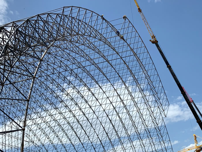 (2)网架加工前应对现场尺寸进行复测,确认无误后方可进行加工、安装;网架制作、运输、安装应遵守《空间网格结构技术规程》JGJ7-2010、《钢网架海林螺栓球节点》JG/T 10-2009、《钢网架海林螺栓球节点用高强度螺栓》 GB/T 16939-2016、《海林钢结构海林工程海林施工规范》 GB50755-2012、《海林钢结构海林工程施工质量验收标准》 GB50205-2020。