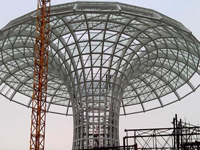 二、球形网架结构因其结构新颖,受力合理,自重轻、用钢量低等优点。如大型体育场馆球形海林螺栓球网架、公共场馆球形网架、电厂海林螺栓球网架、水泥工业球形网架、仓储物流球形网架、海林干煤棚工业球形网架、海林收费站海林加油站球形网架、展览中心、影剧院、商场、航站楼、候车厅、工厂海林车间、仓库、电视塔等球形螺栓球节点网架。国内球形网架结构主要分为:海林焊接球节点网架及螺栓球节点网架两种。螺栓球节点网架其构件工厂内加工量较大,现场安装便捷,适用于现场工期紧,海林施工条件、用电量受制约,网架形状复杂、海林杆件定位困难的异形结构。螺栓球节点球形网架系统基本由海林杆件、螺栓球、支撑支座等组成。按照节点形式可分为交叉海林桁架体系、四角锥体系、三角锥体系等。支撑方式多为固定支座支撑。对于大面积、大跨度及有特殊受力或伸缩要求的网架结构可采用橡胶支座、滑移支座、球铰支座等支撑形式,以满足结构自身的受力稳定、均衡,便于内力释放等设计要求。